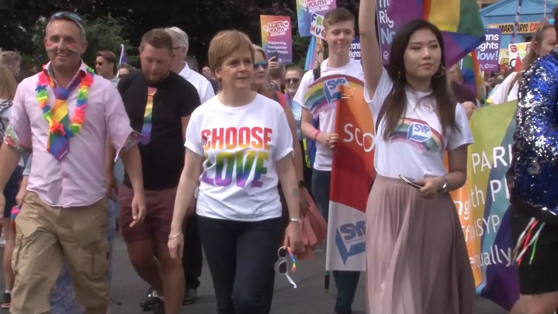 Bha Prìomh Mhinistear na h-Alba, Nicola Sturgeon aig ceann na caismeachd aig Fèis-pròise Ghlaschu an-dè.